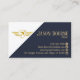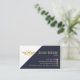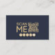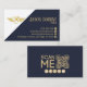 Minimalist, stylish navy blue and white professional business card with your name, profession or title, and contact information (telephone number, e-mail, website, mailing address) in a simple and modern gold text and social media icons. On the back upload your own scannable QR code that provides potential employers or contacts instant access to your Portfolio, Resume, LinkedIn profile, your online business. It's a convenient way to showcase your skills and accomplishments without the need for bulky printed materials.