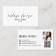 This design features a minimalist, stylish, professional business card with a white background and modern black colored text. The front includes customizable option to add your full name in a script font, profession or job title, and established year. The back has a customizable option to add your full name, contact information (telephone number, e-mail, website, mailing address), custom QR code, and upload your very own photo image. *** NOTE: *** When entering the URL for the custom QR code, scan with your camera to make sure it's correct!