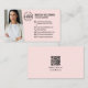 This sleek and simple square business card is perfect for corporate brands, small businesses, consultants, freelancers, or any professional looking for a modern, clean aesthetic. The front of the card features your photo, company logo, name, title or business name, and contact information, creating a professional yet personalized touch. On the back, you'll find a scannable QR code and social media icons with the phrase "Connect with us!" to encourage easy engagement. The card’s bold typography and blush pink background on both sides give it a soft yet polished look, making it versatile for any brand. Personalize your own today for a stylish and professional impression! Simple Blush Pink White Professional QR Code Company Your Logo Business Card.