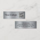 Minimal silver faux brushed metal professional mini business card with your name in a bold, stylish script. Add your website's URL address to create a scannable QR code. On the back, customize additional text (such as email, telephone numbers, firm name and mailing address).