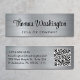 Professional mini business card featuring a brushed silver faux metallic background, your name in a bold, stylish script and your title or company name in simple modern typography. On the back, input your website's URL address to create a scannable QR code and customize additional contact information.