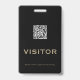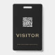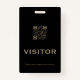 Keep your visitors and guests easily identified with this simple customizable QR visitor badge. The sleek black design features golden accents and space to upload your QR code and text that reads "Visitor" in a classic font. The QR code makes it easy for guests to access important information about your facility or event. The text at the bottom reminds visitors to please return the badge before leaving. This badge is perfect for businesses, hospitals, schools, museums, attractions, and more.