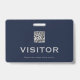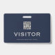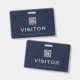 Keep your visitors and guests easily identified with this simple customizable QR visitor badge. The blue and gray design features space to upload your QR code and text that reads "Visitor" in a classic font. The QR code makes it easy for guests to access important information about your facility or event. The text at the bottom reminds visitors to please return the badge before leaving. This badge is perfect for businesses, hospitals, schools, museums, attractions, and more.
