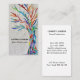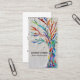 This unique business card is decorated with a mosaic tree in bright colors on a gray background.