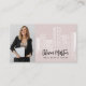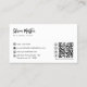Modern, unique, professional real estate business card with a photo placeholder that reflect your personality and make a great first impression. Design features your name in bold handwritten lettering, white icon of city buildings and title in block lettering on a bright background. Personalize further with your contact details, qr code and social media on the back.