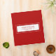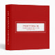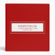 Modern portfolio binder features a minimal design in a red color palette. Portfolio information presented in simple font in a white window with a coordinating frame.
