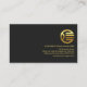 A faux gold line cuts across the card's face demarcating the upper grey layer against its black counterpart below. The top grey layer houses your prestigious name and job title with a slogan caption near the right wall ; Change the caption remarks to suit your needs. Just below the caption remarks, is a creative gold global logo you can use. In the opposite direction lies the contact details in their respective gold buttons.