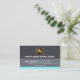 At the top is a gold faucet logo you can use with the business name underneath it. This is followed by your prestigious name and job title with the contact details in their respective blue buttons at the opposite end. A slogan caption to publicize your services is near the base of the card.