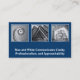 The Professional Scannable Collage Blue White Personal Business Card template is part of the Blue Business Cards and Marketing Items Collection. Insert your name, profession and contact details, then add your virtual address to the QR-code. That makes additional information through your website, portfolio or social presence easily accessible. On the return side a collage of three profession related images gives closer insights about your company. If you have a logo you would like to integrate you just load into for example as the second image. Underneath is space for your professional motto. For more branding ideas visit www.KBMD3signs.com and for customization assistance or to inquire about a custom design contact us at info@KBMD3signs.com.