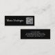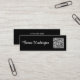 Minimal black professional mini business card with your name in a bold, stylish white script. Add your website's URL address to create a scannable QR code. On the back, customize additional text (such as email, telephone numbers, firm name and mailing address).