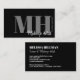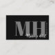 Trendy Simple Modern Black Professional Monogram Business Card. You can change it to any business you want, makeup artist, lash specialist, hair stylist, or even something like marketing, consulting, and more! Featuring a black background and gray and white classic and bold typography mixed with an more elegant script font with the details. A trendy and chic look that is still professional and elegant. You can change out all of the colors to make it the way you want it. The side name on front should work with most initials, but if not, you may want to play around with the spacing in the full editor.