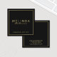 Professional Simple Modern Black and Gold Square Business Card featuring your name in modern sans serif font style and last name in modern calligraphy font style with gold square border.