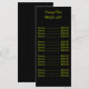 Minimalist Clean Black Solid Color Background and Neon Chartreuse modern font Price List. Personalize for your custom use. Click on the "Customize It" button to change the background color, font styles and font color.