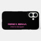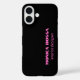 Minimalist Clean Black Soli Color Background and Neon Pink modern font iPhone 16 Case. Personalize for your custom use.