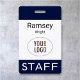 Easily personalize our professional staff name badge with your company logo, employee name, or other custom text. It's pvc plastic and available with a lanyard, clip, or a retractable reel. Designed in navy blue and other colors with a modern minimalist design by MISOOK. All colors are customizable. No minimum order quantity and no setup fee.