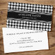 Create a stylish first impression with this chic and elegant business card design. A modern template featuring the iconic houndstooth pattern, paired with contrasting stripes. Personalize with your name, job title, professional services and contact information. All of the text can be customized or deleted to suit your business needs. This classic design is ideal for many different workplaces and professions, including fashion stylists, beauty consultants, creative directors, interior designers, corporate professionals, small businesses and more! Printed colors: black and white.