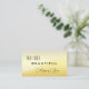 Business card featuring a pretty light yellow gold metallic design. On the back is space for your logo and QR code. Beautiful for a beauty salon or makeup artist.