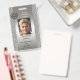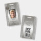 Photo ID badge in metallic construction style with space for your custom photo and logo. On the back you can add a custom bar code or QR code and additional texts or delete the templates.