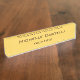 The product was just like it was in the pics, everyone at work loves it! Came on time and it was neatly packed. Bold and Clear. My name can be seen from far and it matches in color.