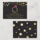 An elegant black and faux gold professional event and wedding planner business card to help promote your party business. The girly design features a ring and faux gold polka dot pattern on a black background. The reverse is a pattern of faux gold polka dots. Perfect for marketing your small business as a wedding planner, event planners, consultant, wedding blogger, or whatever you like. Expertly designed by Victoria of VG Invites. To see more visit www.zazzle.com/vginvites