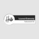 This professional name tag features a name in white on a black background and below on a white background is the title or business name in black. Hello in matching black text is in the circle on the left and can be changed or removed. Personalize the text fields or edit using the design tool to select a font style, size, and color you prefer.