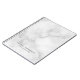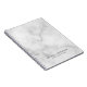 Professional notebook features custom name and text in grey classic serif font style on white marble background.