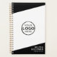 This sleek planner features bold black angled accents at the top and bottom for a modern, polished look. Your company logo sits prominently in the center of the front cover, while customizable lines of text along the bottom can include your name and title, business name and tagline, or any details you choose. Inside, a full calendar layout keeps schedules organized and easy to track. Perfect for planning, meetings, or corporate use, this planner combines style and professionalism with fully editable text and layout.
