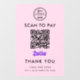 Professional Zelle QR Code Scan to Pay Logo Pink Window Cling