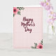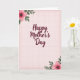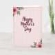 This card features a centered celebratory message in deep maroon lettering with smooth, flowing curves that draw your eye right away. The words sit prominently in the middle, giving the design a close, affectionate focus ❤️. Behind the text, a light pink background carries a faint grid pattern that feels gentle and orderly, like a quiet moment shared between close friends. A thin, textured border in a darker rose tone frames the edges and adds a soft sense of occasion. In two opposite corners, stylized flowers bloom with rich fuchsia petals and darker detailed centers, as if leaning in toward the message. Muted green leaves curl around the blossoms, adding a tender, natural contrast that suggests a caring connection 🌼. The corner florals appear in the top-left and bottom-right, with the maroon text centered between them on the pale pink grid background.