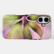 Large modern pretty flower in shades of pink and green with translucent petals.