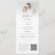Program and Menu combined with photo Wedding. A dual purpose design combining your program and timeline with your menu on the other side, as well as a Qr code for guests to share their photos. Simply change the sample URL to that of the url of the website where your guests can upload their photos. An informal set typography in black for the main headings Menu and welcome, complementing the rest of the text which you can easily personalise. Replace the sample photo with your own favorite.