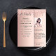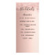 Birthday party program, timeline. Personalize and add a name, age, date and the details. Rose gold faux metallic looking background, decorated with drips. Black colored letters. If you have a lot of text on the front you can reduce the line spacing.