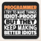 Funny Programmer Sayings "Programmer I Try To Make Things Idiot Proof But They Keep Making Better Idiots". Grab this Funny Programmer design as a funny gifts for an awesome mom, dad or friend.