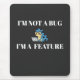 "Show off your coding humor with this witty mouse pad! Perfect for programmers who know that quirks in code are features, not bugs."