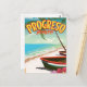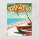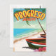 Progreso Mexican beach Travel poster. Mexican old fishing boat vacation poster to Progreso Sandy beach. Yucatán State.