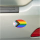 Display the Progress Pride flag magnet in a fun oval, to show your support for the LGBTQ+ community including trans individuals, people of color, and those living with HIV/AIDS. Visibility matters! The magnet serves as a reminder of the progress that has been made towards equality, while also acknowledging that there is still work to be done to ensure that all individuals within the LGBTQ+ community are fully recognized and accepted.