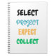 A sleek notebook featuring the bold phrase “Project Select Expect Collect” on the cover. Perfect for everyday notes, journaling, or planning with a minimalist and modern look. .
