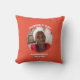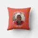 Coral Orange PROMOTED TO GLORY Christian Memorial throw pillow, showing CUSTOMIZABLE PHOTO at the center, with curved text that reads PROMOTED TO GLORY with placeholder name(s) and date(s) underneath. There is an internal dotted border to match the coral orange background that also has a subtle polka dot pattern. Designed to be a memorial keepsake to remember the loss of a loved one. ALL TEXT IS CUSTOMIZABLE so you can to read IN LOVING MEMORY or create your own text, or add the number of years if it's a milestone anniversary, and add the name/date of your loved one. The background, polka dots and border colors can be customized to suit - simply click on Customize Further and select from the color palette (or email me for assistance if required). Other colors and pet version available.