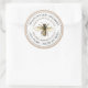 Personalize with your own business name and description. Detailed taupe and gold-colored vintage honeybee illustration with kraft border. Great for honey jars and beeswax candles and beeswax lotion bars. The smaller size is a great fit for 6 oz honey bear containers and most honey lid labels.