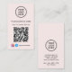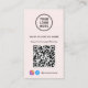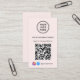 Modern light pink business card featuring your QR code for customers to scan for a list of your products, services, prices or other information. Upload your logo and QR code and add your business name, website, slogan, phone number, street address, etc. in simple typography. Add your instagram and facebook user id for customers to follow you on social media.