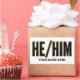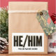 Pronouns He/Him Black and Gold will be the perfect stickers for you. Add your name to personalize. Stick them anywhere you need to state your pronouns.