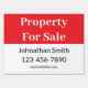 This bright red and white outdoor sign says Property For Sale at the top. Additional text is available for the real estate agent's name, phone number, and website. All text can be edited or deleted.