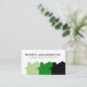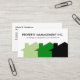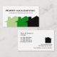 Real estate property management business card template in a modern and trendy two side design that highlights your company name on the front with house symbols in shades of green. Designed for Realty management services for residential or commercial properties.