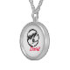 I chose gold plated so that the metal would not react with my skin oils and perspiration. But, I changed the necklace from the gold plated one to a sterling silver. My skin cells will tarnish the silver. But it will not look as bad if some portion of the gold plated necklace somehow became compromised. Zazzle did a find job turning the picture into a pendant for me. As you can see, the colors and the printing of the final product, match the preview. The picture I took is not very clear. But I am pleased with the product I received.