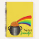 Spiral notebook design features an original marker illustration of a pot of gold at the end of a rainbow, and a shamrock and rainbow design on the back side. Simply personalize with your information for a unique St. Patrick's Day gift.