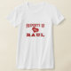 My overall review is that the T-shirt is nice, it fits true to size however the font is significantly smaller than advertised and you can't read it. The printing is unreadable and there is a strain to read it. It does not look like the advertised product. Maybe the shirt color is darker or a larger more visible font should have been used. Photos with and without flash and font is barely legible.