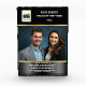 A simple but elegant design featuring a photo of the person/s receiving the award edged with a horizontal faux gold border rests against a black background that has a faux sheen to the bottom third on which white custom templates with a black drop shadow appear. Personalize the text and logo templates to suit your corporate or business requirements.