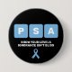 Stylish Prostate Cancer Awareness PSA button with CUSTOMIZABLE TEXT, designed especially to raise awareness of prostate cancer. The wording reads KNOW YOUR LEVELS, IGNORANCE ISN'T BLISS with the letters PSA in boxes. ALL TEXT IS CUSTOMIZABLE including the initials in the boxes. Customizable text is also on the reverse. Text can be personalized with your own awareness message, or with your name or organization's name. Spread this important message – and do it in style.