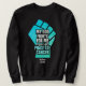Modern Prostate Cancer MY GOD FIGHTS FOR ME Christian Unisex sweatshirt in BLACK with CUSTOMIZABLE TEXT, designed for men and women to raise awareness of prostate cancer. Background image is of a raised power fist. The wording reads MY GOD FIGHTS FOR ME AGAINST PROSTATE CANCER. The CUSTOMIZABLE text reads JOSHUA 23:10. This Bible verse can be personalized with your own prostate cancer awareness message, or with your name or organization's name. Spread this important message – and do it in style.