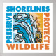 Bold, colorful design says: Preserve Shorelines, Protect Wildlife. Advocate for shores and beaches - ocean, lake, river, creek - habitats that support abundant life. Great gifts for the eco-friendly.